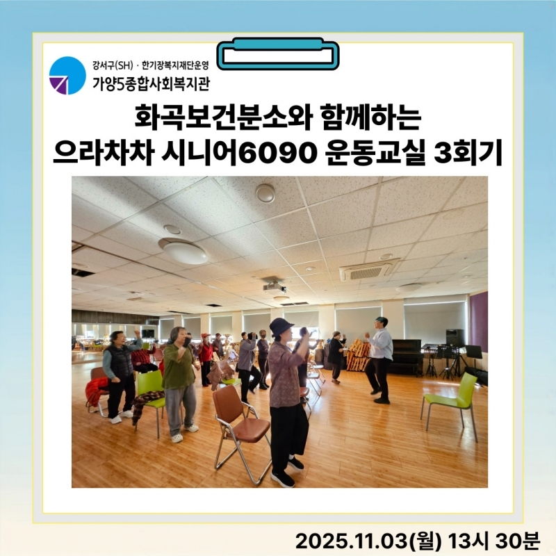 Ȱ°ÇºÐ¼Ò¿Í ¿¬°èÇÏ¿© À¸¶óÂ÷Â÷ ½Ã´Ï¾î 6090 ¿îµ¿±³½Ç 3¹øÂ° ½Ã°£À» ÁøÇàÇÏ¿´½À´Ï´Ù.