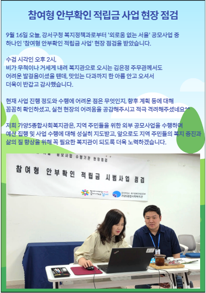 <Âü¿©Çü ¾ÈºÎÈ®ÀÎ Àû¸³±Ý »ç¾÷ ÇöÀå Á¡°Ë>