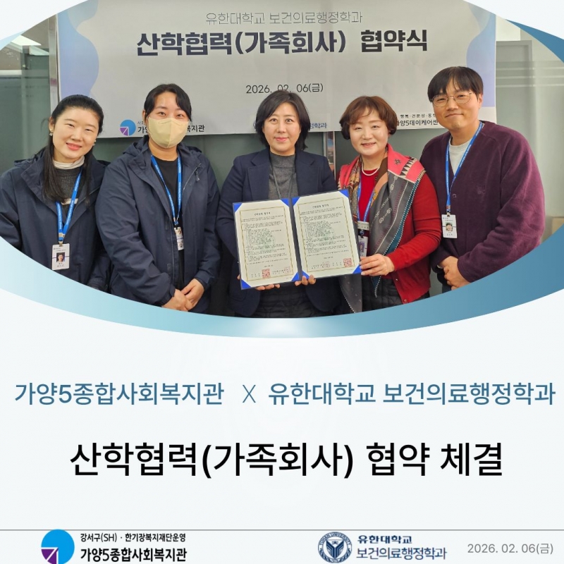 °¡¾ç5Á¾ÇÕ»çȸº¹Áö°üÀº 2¿ù 6ÀÏ À¯ÇÑ´ëÇб³ º¸°ÇÀÇ·áÇàÁ¤Çаú¿Í »êÇÐÇù·Â(°¡Á·È¸»ç) Çù¾àÀ» ü°áÇϰí Çù¾à½ÄÀ» ÁøÇàÇÏ¿´½À´Ï´Ù.