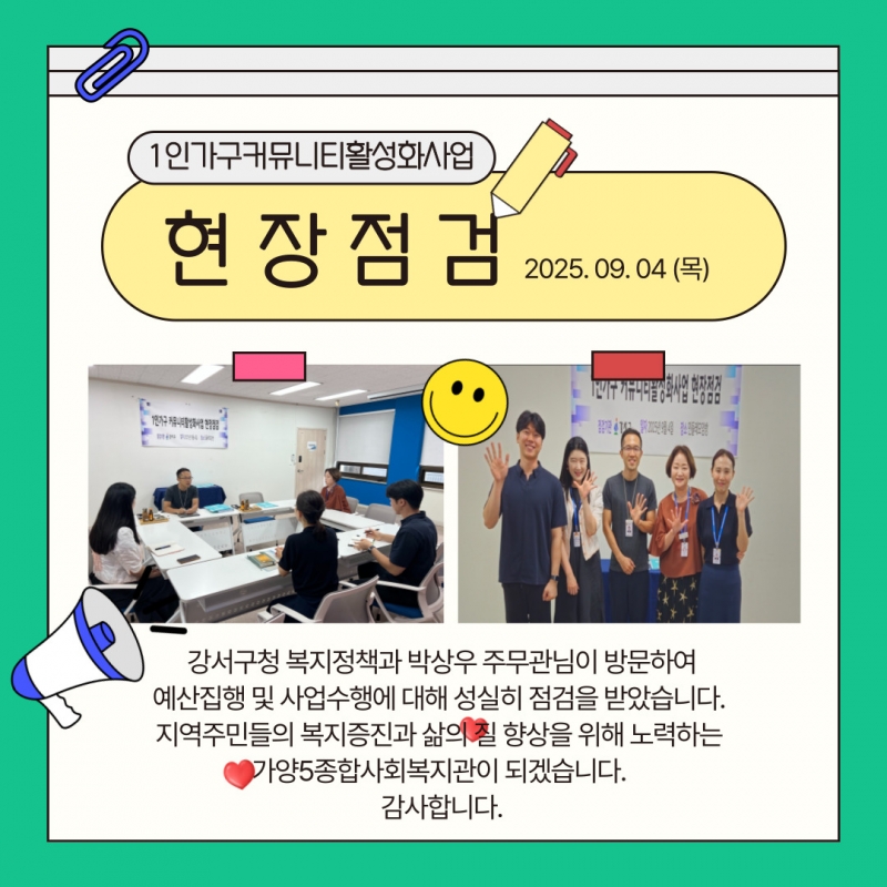 [ÀÚÄ¡ÆÀ]1Àΰ¡±¸ Ä¿¹Â´ÏƼȰ¼ºÈ»ç¾÷ ÇöÀåÁ¡°ËÀÌ ÁøÇàµÇ¾ú½À´Ï´Ù.
