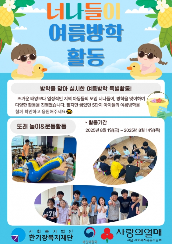 Ä£±¸µé°ú ÇÔ²² ±âȹÇÑ ½Å³ª´Â ³îÀÌ¿Í ¿îµ¿À¸·Î ¸öµµ ưư, ¸¶À½µµ µçµç! ¼·Î ¿ôÀ½²ÉÀ» ÇÇ¿ì¸ç Áñ°Ì°Ô ¶Ù¾î³î¾Ò½À´Ï´Ù. ¾ÈÀüÇÑ È°µ¿À» À§ÇØ ÀúÇгâ¹Ý°ú °íÇгâ¹ÝÀ» ³ª´©¾î ¼öÁØ¿¡ ¸Â´Â ³îÀ̰¡ ÁøÇàµÇ¾î ´õ¿í Èï¹ÌÁøÁøÇÑ È°µ¿À̾ú½À´Ï´Ù!
