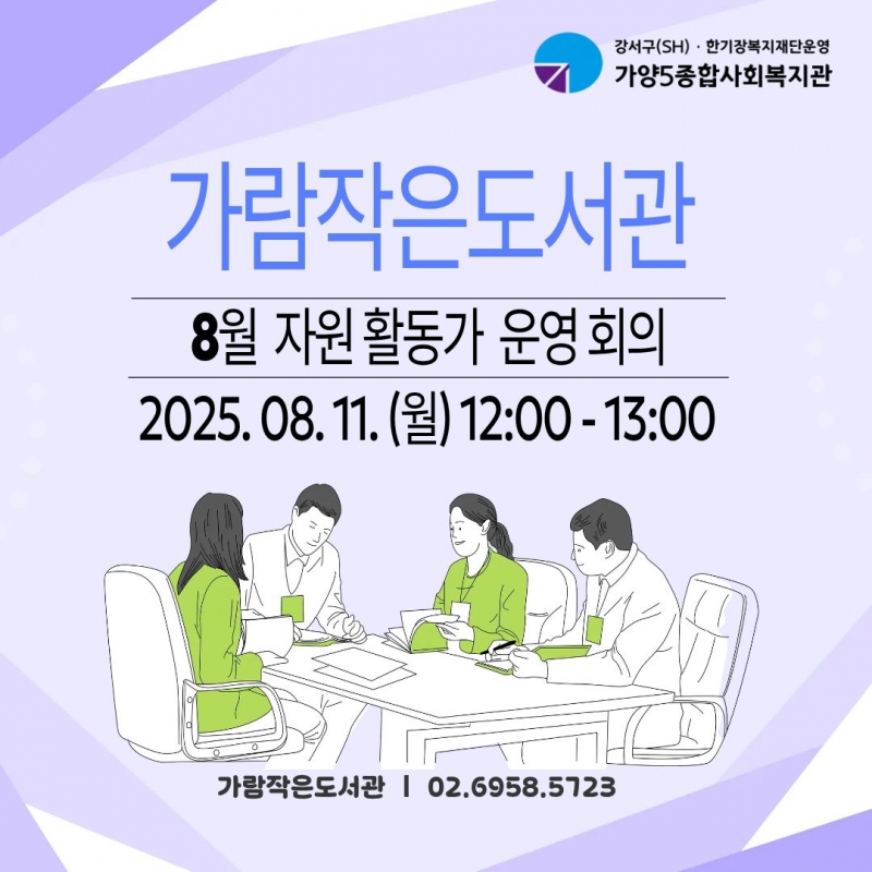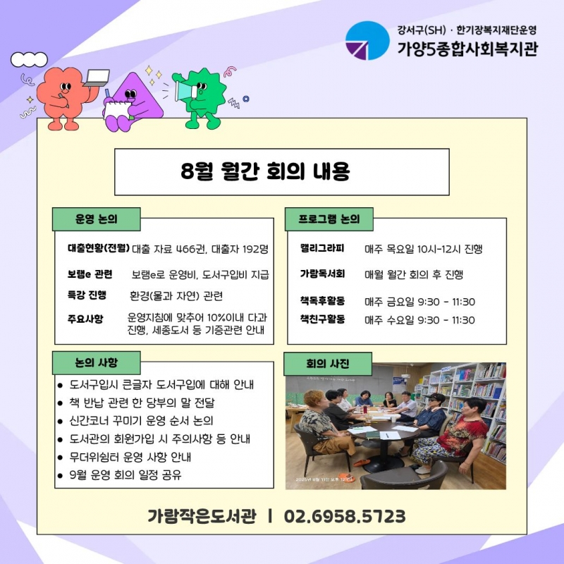 °¡¶÷ÀÛÀºµµ¼°ü 8¿ù ¿ù°£È¸ÀǸ¦ 8¿ù 11ÀÏ ÁøÇà ÇÏ¿´½À´Ï´Ù~