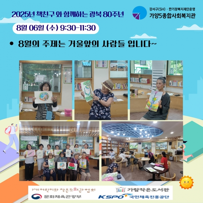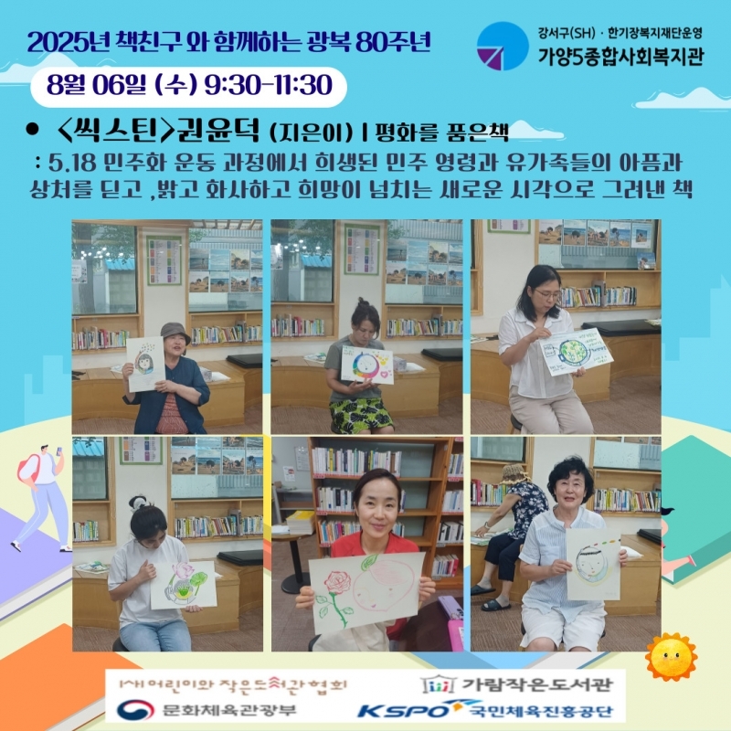 "2025 å챏¿Í ÇÔ²²ÇÏ´Â ±¤º¹ 80Áֳ⠺ûÀÇ ¿©Á¤À» Ã¥¿¡¼ ã´Ù", <´Ù½ÃÇÔ²² °È´Â ºûÀÇ ±æ>ÀÇ ½½·Î°ÇÀ¸·Î 8¿ù ù°ÁÖ Ã¥Ä£±¸ ÇÁ·Î±×·¥À» 6ÀÏ(¼ö¿äÀÏ) ÁøÇà ÇÏ¿´½À´Ï´Ù~~