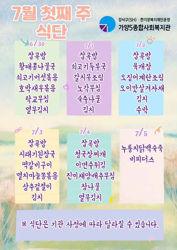 °¡¾ç5¹ä»ó(7¿ù ù° ÁÖ ½Ä´ÜÇ¥)