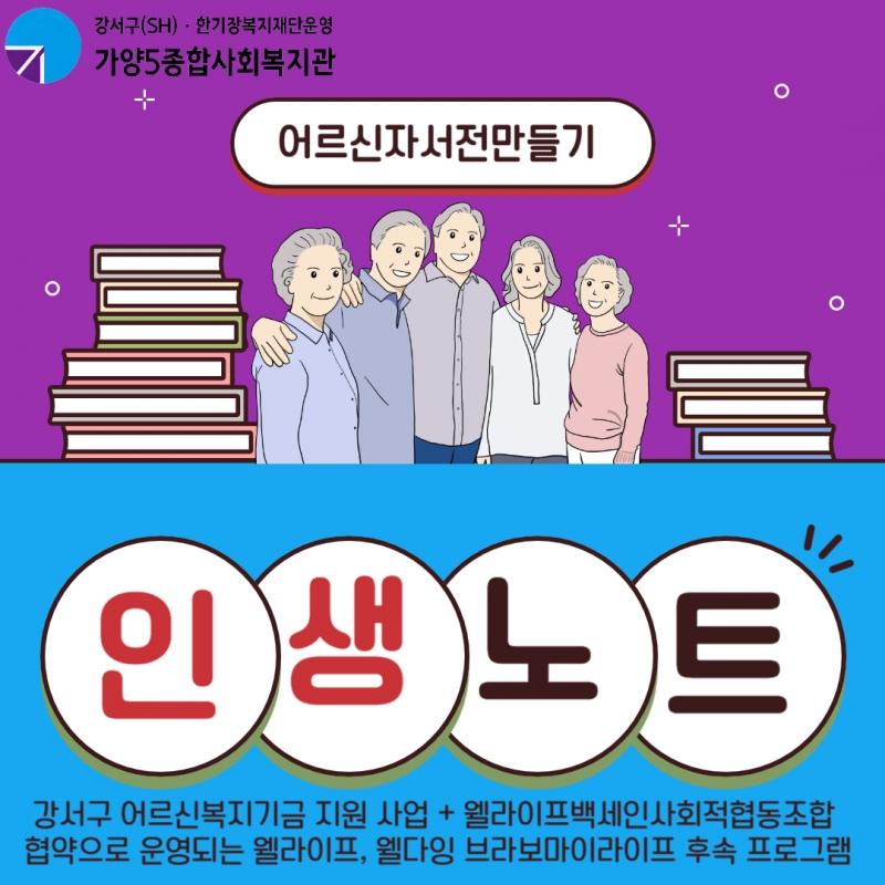 °¡¾ç5Á¾ÇÕ»çȸº¹Áö°ü¿¡¼´Â ¾î¸£½ÅµéÀÇ »îÀ» µÇµ¹¾Æº¸°í ¼ÒÁßÇÑ À̾߱⸦ ±â·ÏÇÏ´Â 'Àλý³ëÆ®- ¾î¸£½Å ÀÚ¼Àü ¸¸µé±â' ÇÁ·Î±×·¥À» ½ÃÀÛÇÏ¿´½À´Ï´Ù.