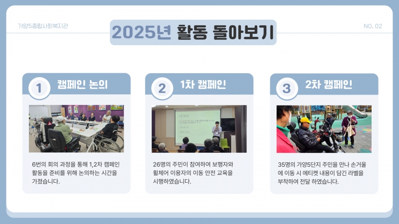 ¿Ã ÇÑ ÇØ´Â ÁֹεéÀÌ ¾ÈÀüÇÏ°Ô À̵¿ ÇÒ ¼ö ÀÖµµ·Ï ÀνÄÀ» °³¼±ÇÏ´Â Ä·ÆäÀÎÀ» ÁøÇàÇÏ¿´½À´Ï´Ù.