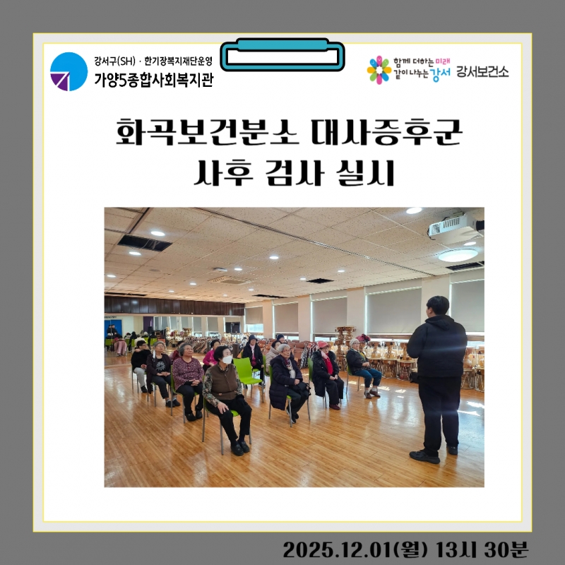 üÁ¶ ÇÁ·Î±×·¥ Á¾·á ÈÄ, ¿ì¸® ¾î¸£½ÅµéÀÇ º¯È­¸¦ È®ÀÎÇϱâ À§ÇØ ´ë»çÁõÈıº »çÈİ˻縦 ½Ç½ÃÇÏ¿´°í, Ã¼¼ººÐ °Ë»ç¿Í ü·Â °ËÁøÀ» ÅëÇØ ±àÁ¤ÀûÀÎ È¿°ú¸¦ È®ÀÎÇÒ ¼ö ÀÖ¾ú½À´Ï´Ù.