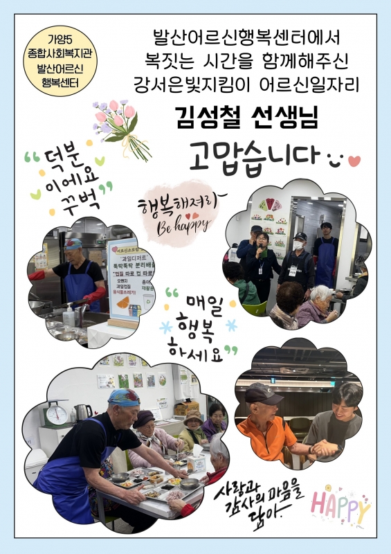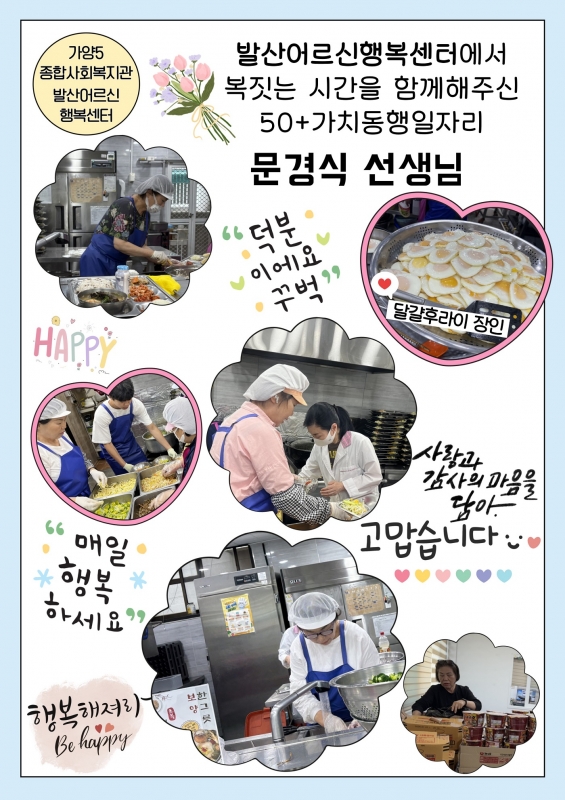 10¿ù ¸»ºÎÅÍ ¿À´Ã±îÁö, ¿ì¸® °¡¾ç5Á¾ÇÕ»çȸº¹Áö°ü ¹ß»ê¾î¸£½ÅÇູ¼¾Å͸¦ µçµçÇÏ°Ô ÁöÄÑÁ̴ּø ³× ºÐÀÇ ¼±»ý´ÔÀÌ °¢ÀÚÀÇ °ÉÀ½À» À̾°Ô µÇ¾ú½À´Ï´Ù.