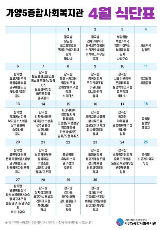 °¡¾ç5Á¾ÇÕ»çȸº¹Áö°ü 4¿ù ½Ä´ÜÇ¥ÀÔ´Ï´Ù.