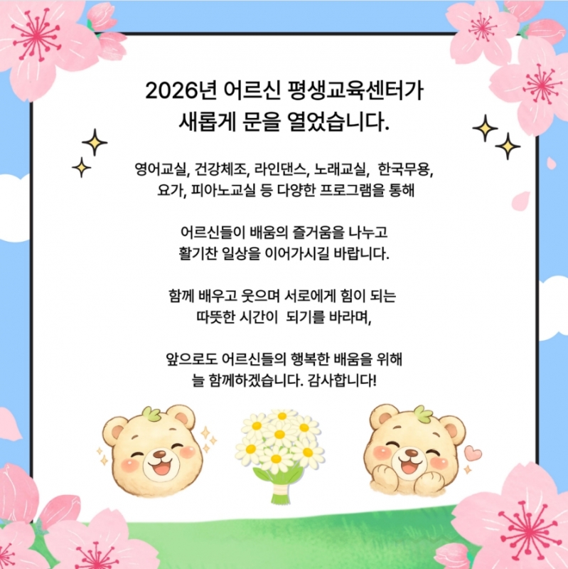 µû¶æÇÑ º½¹Ù¶÷°ú ÇÔ²² 2026³â ¾î¸£½ÅÆò»ý±³À°¼¾ÅͰ¡ »õ·Ó°Ô ¹®À» ¿¾ú½À´Ï´Ù🌸