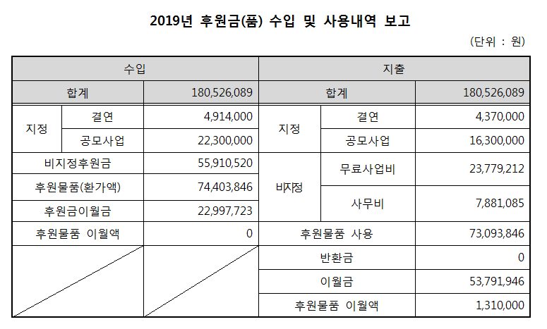 2019³â º¹Áö°ü ÈÄ¿ø±Ýǰ ¼öÀÔ ¹× »ç¿ëº¸°í
