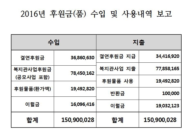 2016³â °¡¾ç5Á¾ÇÕ»çȸº¹Áö°ü ÈÄ¿ø±Ýǰ ¼öÀÔ ¹× »ç¿ëº¸°í