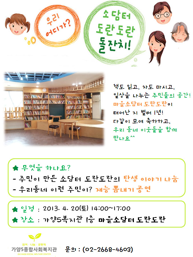 4¿ù 20ÀÏ!! ¸¶À»¼Ò´ãÅÍ µµ¶õµµ¶õÀÇ µ¹ÀÜÄ¡¸¦ ÁøÇàÇÕ´Ï´Ù^^