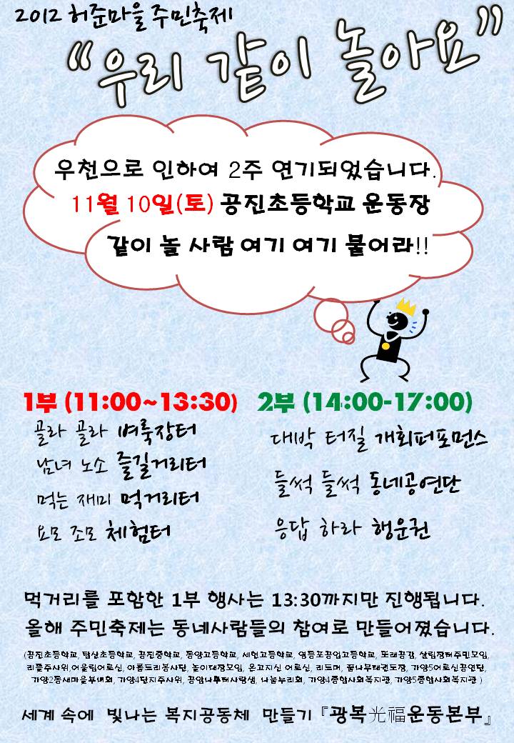 "¿ì¸® ÇÔ²² ³î¾Æ¿ä" ÁÖ¹ÎÃàÁ¦°¡ 11¿ù 10ÀÏ·Î ¿¬±âµÇ¾ú¾î¿ä