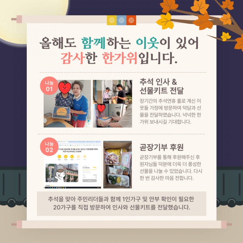 [°ðÀå±âºÎ ÈÄ¿ø] Ãß¼®¸ÂÀÌ 1Àΰ¡±¸ ÁֹεéÀÇ °¡Á¤À» ¹æ¹®ÇÏ¿´½À´Ï´Ù.