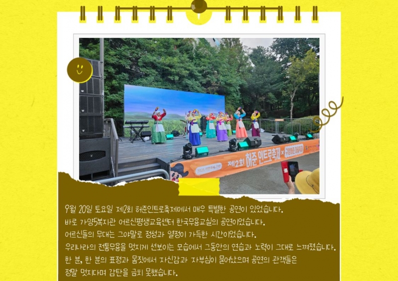¾î¸£½ÅµéÀÇ °í¿î Ãã»çÀ§°¡ ÇãÁØ ÀÎÆ®·Î ÃàÁ¦¸¦ ¼ö³õ¾Ò½À´Ï´Ù!-¾î¸£½ÅÆò»ý±³À°¼¾ÅÍ Çѱ¹¹«¿ë °ø¿¬