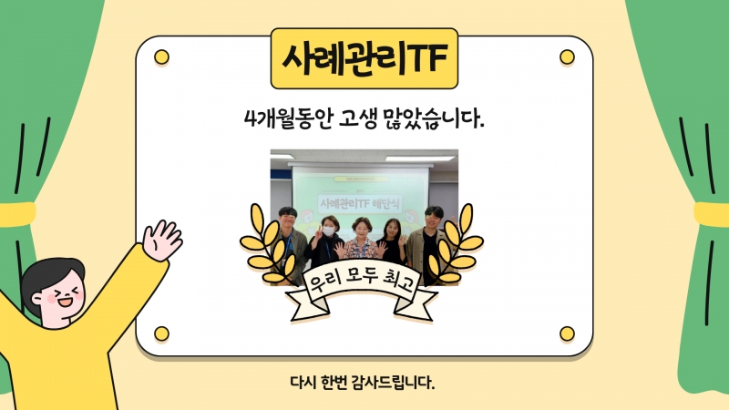 [»ç·Ê°ü¸®TF] »ç·Ê°ü¸®TF ÇØ´Ü½ÄÀÌ ÀÖ¾ú½À´Ï´Ù.