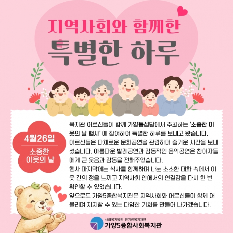 [ÅëÇÕº¹Áö°ú] Áö¿ª»çȸ¿Í ÇÔ²²ÇÑ Æ¯º°ÇÑ ÇϷ縦 °øÀ¯ÇÕ´Ï´Ù.