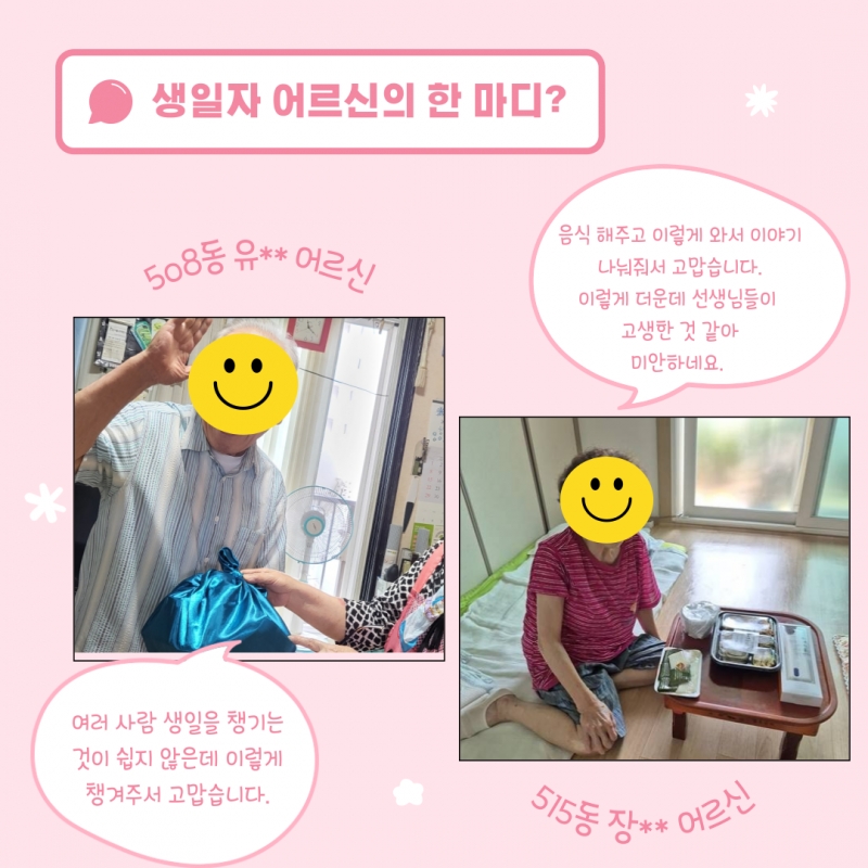 »ý½ÅÀÚ ¾î¸£½Åµé¿¡°Ô ¾È³» Àüȸ¦ ÇÒ ¶§µµ Ȱµ¿ ´çÀÏ¿¡ Á÷Á¢ ¾ó±¼À» ºÉ ¶§µµ »ý½ÅÀÚ ¾î¸£½ÅµéÀÇ °øÅëÀûÀÎ À̾߱â´Â "ÀÌ·¸°Ô ´õ¿îµ¥ ³Ê¹« °í»ý ÇÏ´Â °Å ¾Æ´Ï³Ä. ¿Í¼ À̾߱⠳ª´©°í ¾ó±¼ º¸´Â °Ç ÁÁÀºµ¥ ³Ê¹« ¹Ì¾ÈÇÏ´Ù."´Â ¸»¾¸ À̼̽À´Ï´Ù. ±×·¯¸é¼ ¿ôÀ¸¸ç ÁÁ¾ÆÇϽô ¾î¸£½ÅµéÀ» º¸´Ï ±×·¡µµ ¿À±â ÀßÇß´Ù´Â »ý°¢À̾ú½À´Ï´Ù.