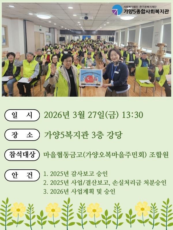 ¸¶À»Çùµ¿±Ý°í Á¤±âÃÑȸ¸¦ ¾Æ·¡¿Í °°ÀÌ ÁøÇàÇÕ´Ï´Ù.