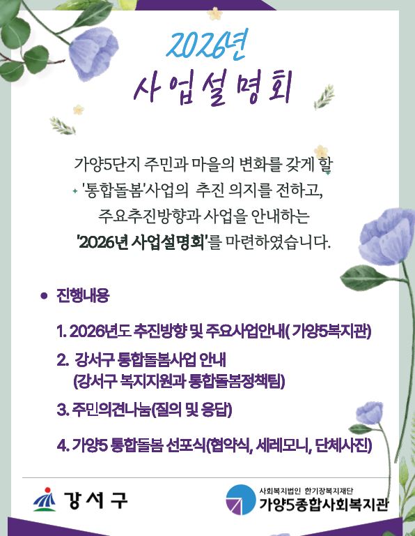 °¡¾ç5Á¾ÇÕ»çȸº¹Áö°ü(°üÀå:½ÅÇýÁ¤)Àº3¿ù 27ÀÏ, µ¹º½ÅëÇÕÁö¿ø¹ý ½ÃÇàÀÏ¿¡ ¸ÂÃç 2026³â »ç¾÷¼³¸íȸ¿Í °¡¾ç5ÅëÇÕµ¹º½¼±Æ÷½ÄÀ» °³ÃÖÇÏ¿´½À´Ï´Ù.
