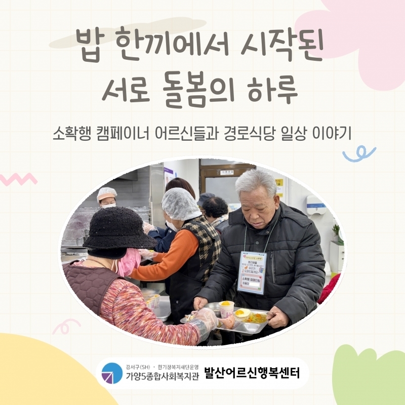 ¼ÒÈ®Çà Ä·ÆäÀÌ³Ê ¾î¸£½ÅµéÀÇ ÀÚ¹ßÀûÀÎ Âü¿©¿Í Çù·ÂÀº °æ·Î½Ä´ç ¿î¿µ¿¡ ¾ÈÁ¤°¨°ú µçµçÇÔÀ» ´õÇØÁÖ°í ÀÖÀ¸¸ç, º¹Áö°üÀÇ ÇϷ縦 ´õ¿í µû¶æÇÏ°Ô ¸¸µé°í ÀÖ½À´Ï´Ù.