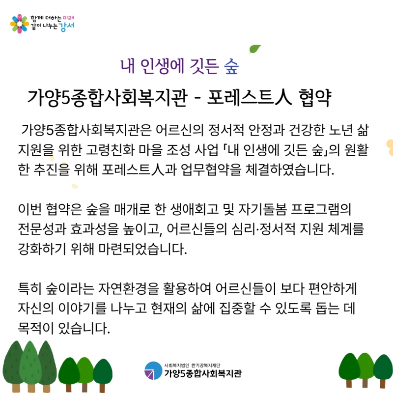 ¡¸³» Àλý¿¡ ±êµç ½£¡¹ÀÇ ¿øÈ°ÇÑ ÃßÁøÀ» À§ÇØ Æ÷·¹½ºÆ®ìѰú ¾÷¹«Çù¾àÀ» ü°áÇÏ¿´½À´Ï´Ù.