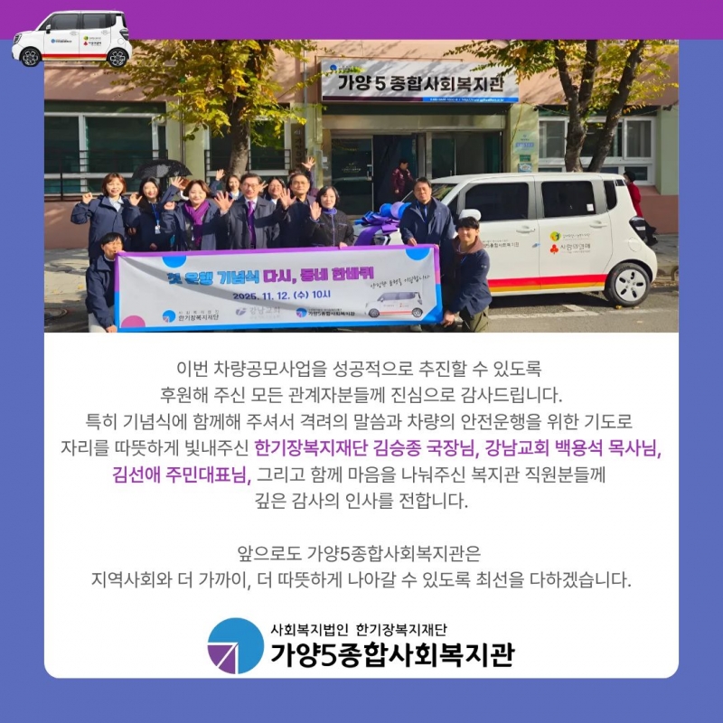 2025³â °¼±¸ »çȸº¹Áö½Ã¼³ Â÷·®Áö¿ø °ø¸ð»ç¾÷ ¼±Á¤ <ù ¿îÇà ±â³ä½Ä- ´Ù½Ã, µ¿³× ÇѹÙÄû>