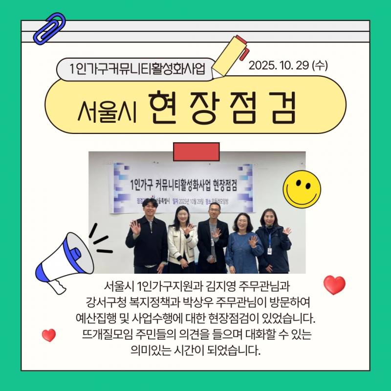 [ÀÚÄ¡ÆÀ] 1Àΰ¡±¸ Ä¿¹Â´ÏƼȰ¼ºÈ»ç¾÷ ¼¿ï½Ã ÇöÀåÁ¡°ËÀÌ ÁøÇàµÇ¾ú½À´Ï´Ù.