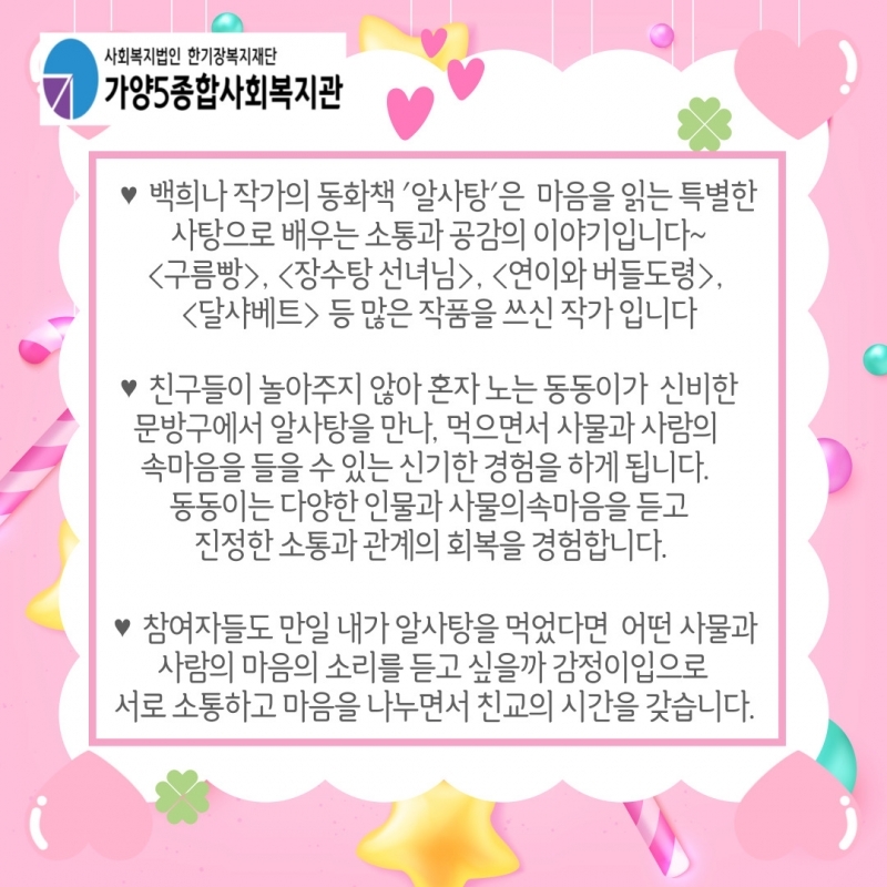 <¹éÈñ³ª ÀÛ°¡>ÀÇ "¾Ë»çÅÁ" µ¿ÈÃ¥À¸·Î [³ªµµ °»ç´Ù!] µ¶¼ÇÁ·Î±×·¥À» ÁøÇàÇÏ¿´½À´Ï´Ù.