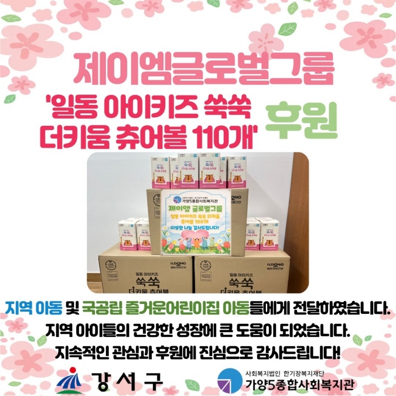 Á¦ÀÌ¿¥±Û·Î¹ú ±×·ì¿¡¼­ Áö¿ª ¾ÆÀ̵éÀ» À§ÇØ 'Àϵ¿ ¾ÆÀÌŰÁî ¾¦¾¦ ´õŰ¿ò Ãò¾îº¼'À» 110°³ ÈÄ¿øÇØÁּ̽À´Ï´Ù. ¾ÆÀ̵éÀÇ ÇູÇÑ ¼ºÀåÀ» À§ÇÑ µû¶æÇÑ °ü½É ´öºÐ¿¡ ¾ÆÀ̵éÀÇ ¹Ì¼Ò°¡ º½²Éó·³ ¹øÁ®°©´Ï´Ù. Á¤±âÀûÀ¸·Î ÈÄ¿øÀ» Áö¼ÓÇØÁֽô Á¦À̾ڱ۷ιú ±×·ì¿¡ Áø½ÉÀ¸·Î °¨»çµå¸³´Ï´Ù!